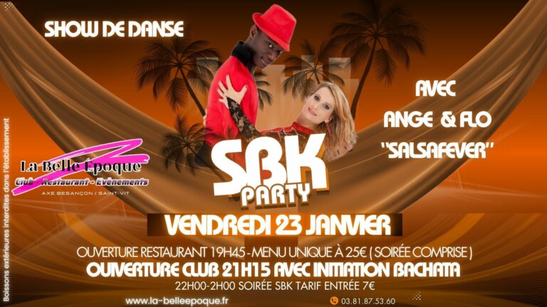Vendredi 23 Janvier : A l’occasion de leur 13 ans l’association Salsa fever organise à la Belle époque une soirée riche en couleur. Considéré comme l’une des plus grosses de la région, cette soirée SBK promet plein de surprises.