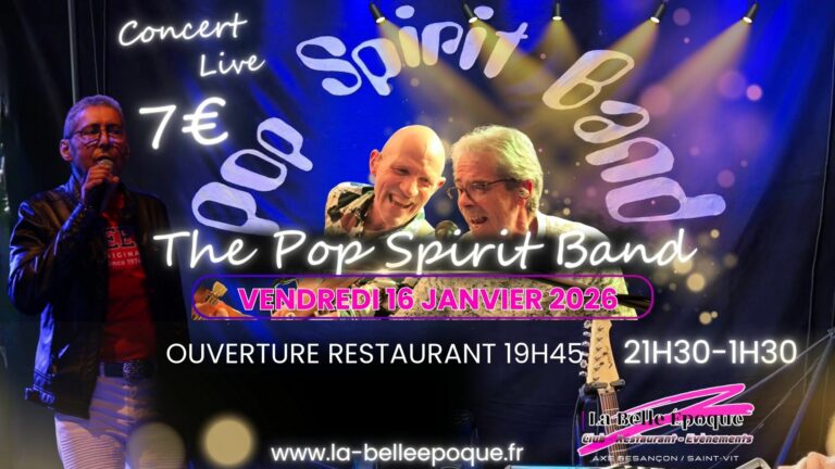Vendredi 16 Janvier : The pop spirit band, groupe incontournable de reprise pop rock anglosaxon de la région seront la pour un show explosif.