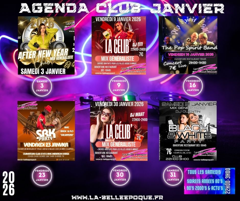 Le mois de janvier s’annonce riche en évènement. Il y en a pour tous les goûts, soirée Dj mix généraliste, soirée célibataire, Pop rock anglosaxon.