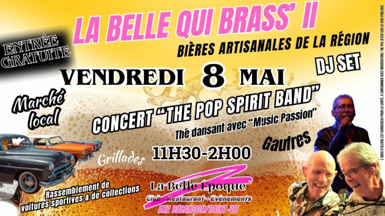 🎤 20h – 22h30 : Concert The Pop Spirit Band (intérieur)