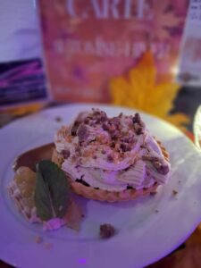 Tiramisu café glacé Ou Bavarois pomme spéculos Ou Mousseux noix de coco chocolat blanc Ou Entremet chocolat noisette façon charlotte