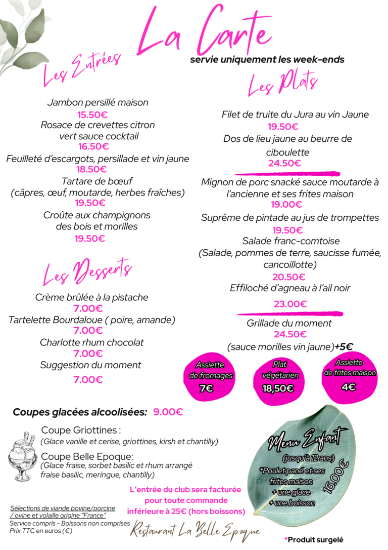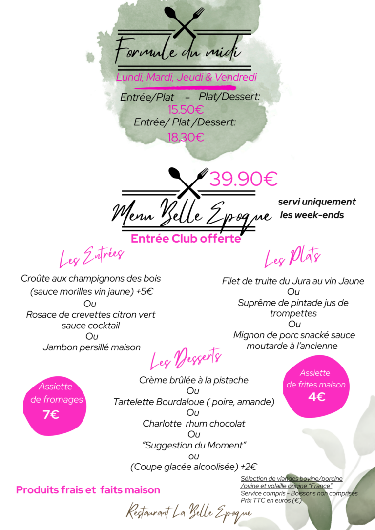 Notre restaurant traditionnel est situé à 5 minutes de Besançon en direction de Dôle. Laissez-vous embarquer dans notre univers chaleureux et convivial de gastronomie française. Trois formules vous seront proposées :